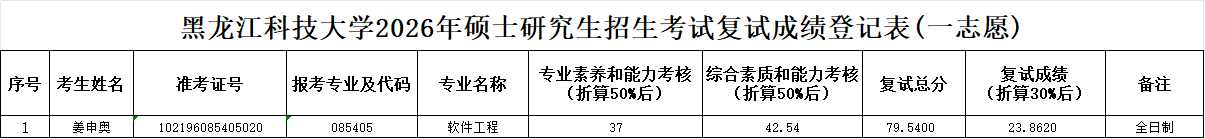 2026年硕士研究生招生考试复试成绩公示(一志愿)