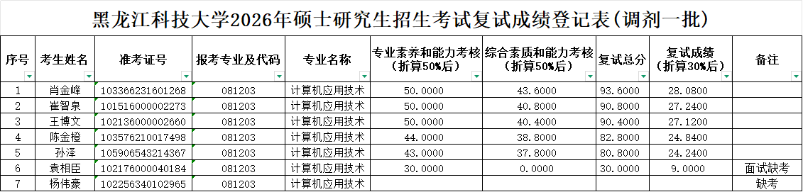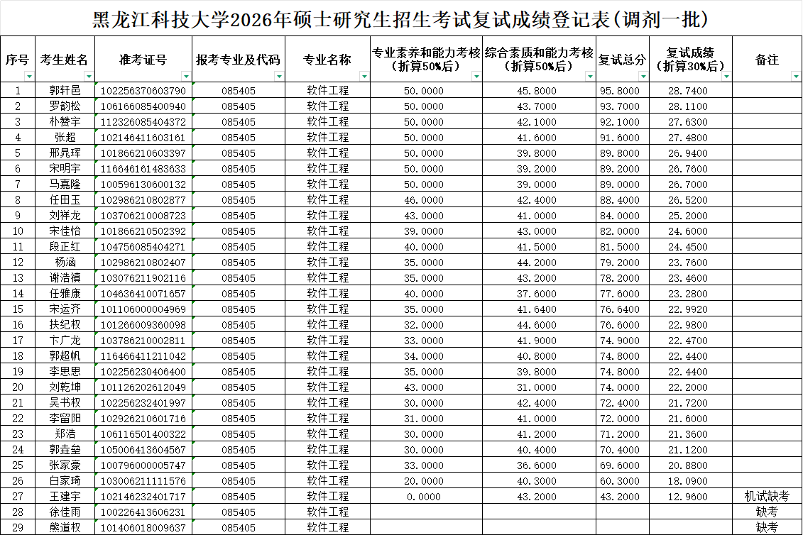 2026年硕士研究生招生考试复试成绩公示(调剂一批)