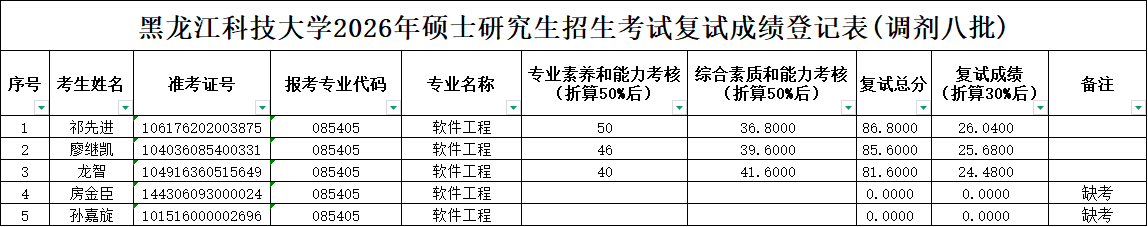 2026年硕士研究生招生考试复试成绩公示(调剂八批)